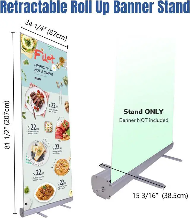 - Quick Installation & Portability - Just pull out the banner from the roll up stand, fix the support pole to the base & aluminum clamping bar