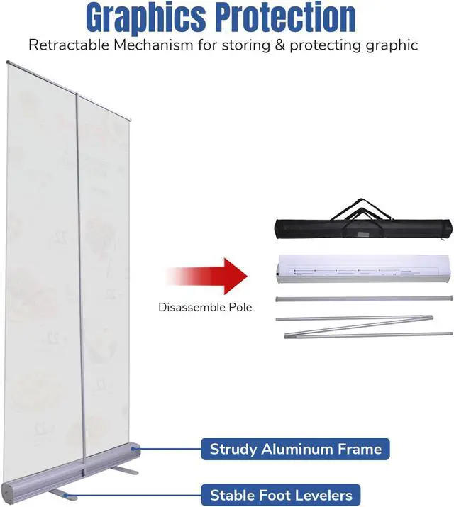 - Graphics Protection & Replacement - Graphics can be retracted into base for storage & safe protection; Poster replacements available to update graphics