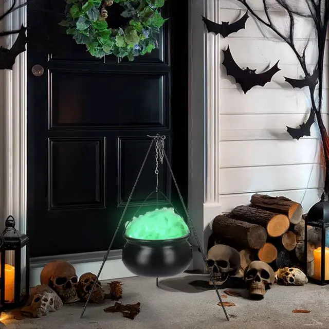 - Witch Cauldron with LED Lights - Halloween Witches Cauldron on 31" Tripod replicates the myth of witches brewing magic potions, with green LED string lights added inside the bowl for extra ghostly look, ready to brew up some spooky vibes for your Halloween night