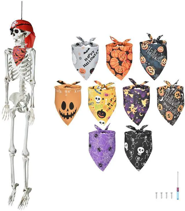 - Full Set - This set of Halloween Triangle Dog Bandanas consists of 10 pieces of Halloween theme scarves with pumpkin, ghost, skeleton, bat and spider web patterns in a cute and quirky design which is eye-catching, ideal for dressing up your dog or pet and enhancing their personality during parties, carnivals or celebrations