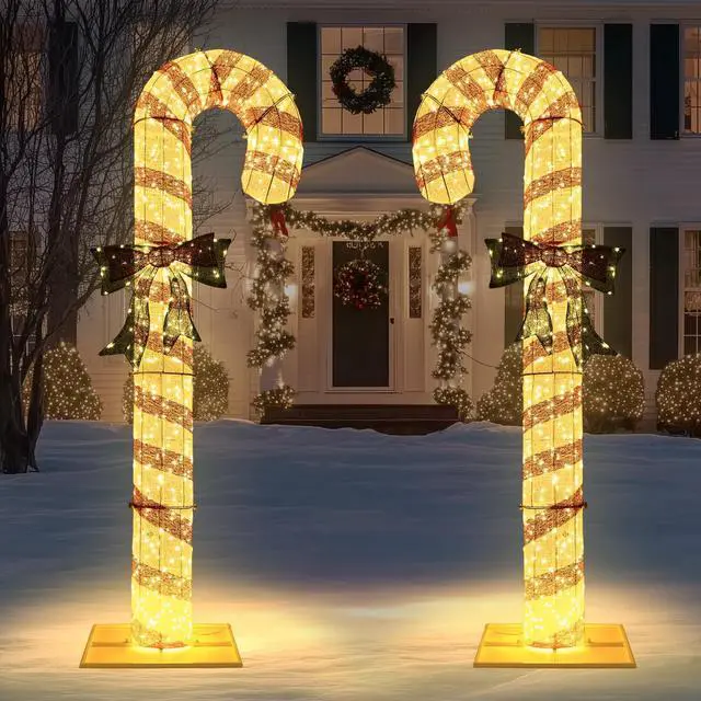 - Embrace the Light of Christmas - This 2-Packs 8ft Pre-Lit Candy Cane Decoration with magnificent size radiates a soft, warm glow that embodies the joy and blessings of the season. Grace your yard with the gentle illumination that reminds you of Christ's love and the shepherd's care