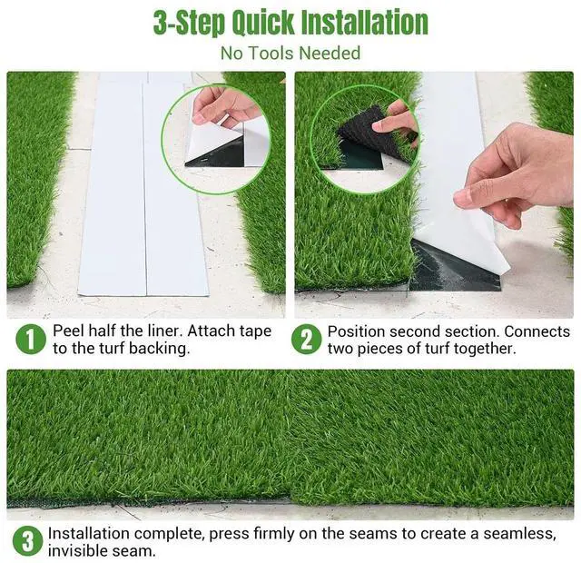 - 3-Step Quick Installation - Streamline your workflow and complete more jobs in less time. Simply peel back half the liner, position your first turf piece, then remove the remaining liner and press the second piece into place