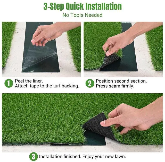 - Effortless 3-Step Installation - Streamline your workflow and accelerate project completion. Simply peel the protective liner, position your turfs, and press the edges firmly onto the tape