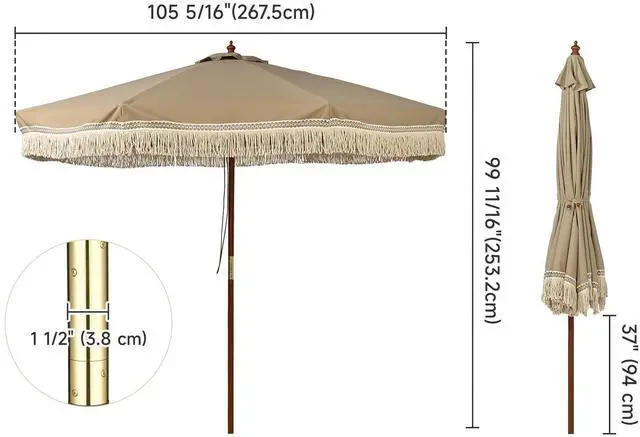 - Bare Umbrella Pole Length After Closing 37" (94 cm)