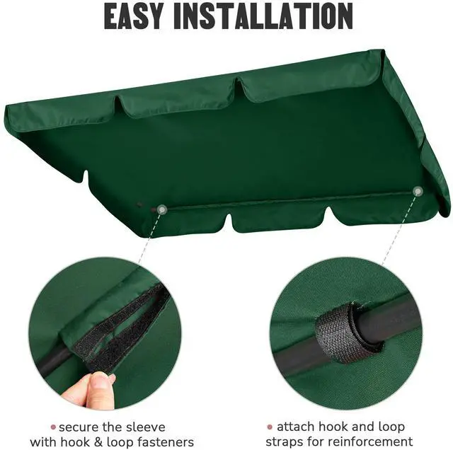 - Stylish Replacement Swing Canopy - 76 3/8" x 44 1/8" Yescom Swing Top Cover is perfect for renewing your swing with less cost by only replacing the old or worn one, offers better protection, brightens your mood with stylish green color, adds additional elegance by graceful scalloped edge; Perfect to use as shade " protective cover while swinging outdoors during hot summer