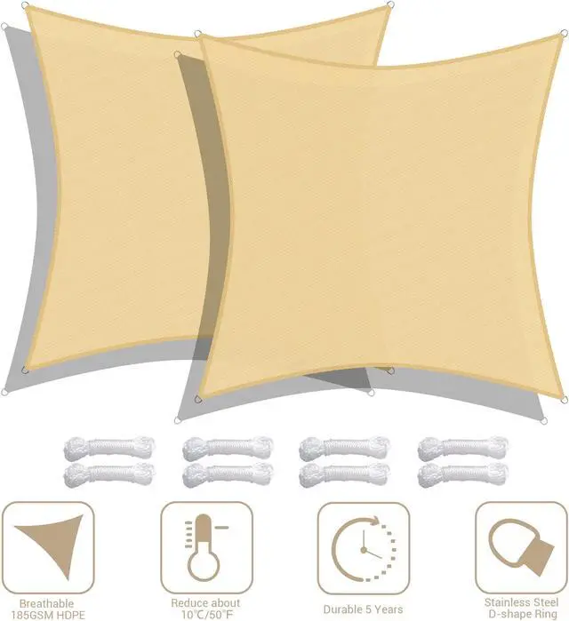 - Decorative & Effective Shading - 2 Packs of 16x16 ft Square Sun Shade Sail, gorgeous color to attract attention, beautiful decoration for backyard, balcony, terrace, porch, pergola, poolside, deck and a perfect awning sunscreen shade to cool down patio for outdoor party with friends or families
