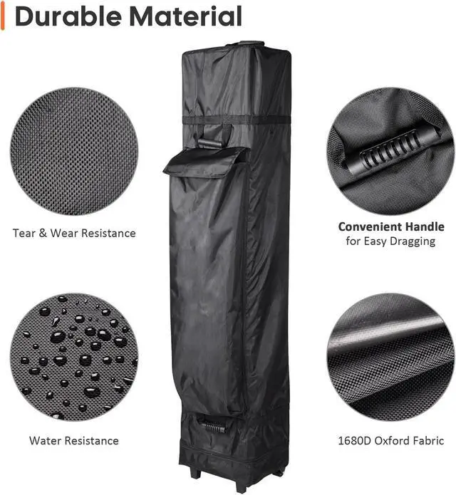 - 3 Large Handles & Oversized Pocket - Equipped with 3 large handles for offering comfortable grips, including 1 handle on the top for dragging the roller bag to roll conveniently, and 2 handles on the front side for easy lifting and loading into your car trunk; Comes with an oversized pocket with a lid for extra storage of canopy accessories