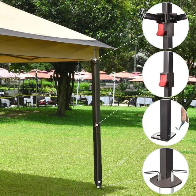 - Easy to Set up & Carry - Tool-free assembly with 4 steps: Extend the frame, fixate the canopy, adjust the height and then attach sidewalls; 600D Oxford fabric portable bag included, store the frame for carrying around, a portable shelter for picnic, barbecue, trip and other outdoor activities