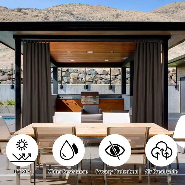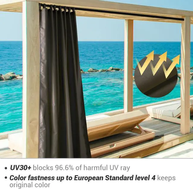 • Hook & Loop Fastener for Easy Installing - 2 Pack 54"x96" Outdoor Curtain Panels, tab top fits curtain rod with diameter up to 2"