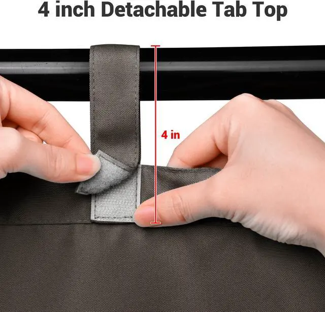 - Hook & Loop Fastener for Easy Installing - 2 Pack 54"x96" Outdoor Curtain Panels, tab top with hook & loop fastener, much easier for attaching to the rod, 4" long tab top perfectly fit curtain rod with diameter up to 2"