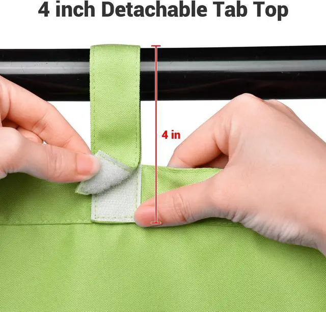 - Hook & Loop Fastener for Easy Installing - 4 Pack 54"x96" Outdoor Curtain Panels, tab top with hook & loop fastener, much easier for attaching to the rod, 4" long tab top perfectly fit curtain rod with diameter up to 2"
