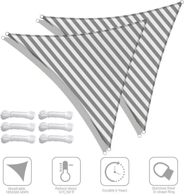 - Decorative & Effective Shading - 2 Packs of 7 ft Equilateral Triangle Sun Shade Sail, gorgeous color to attract attention, a beautiful decoration for backyard, balcony, terrace, patio, porch, pergola, deck and so on; Also, a perfect sun shade to offer a shelter near the pool for swimmers to rest