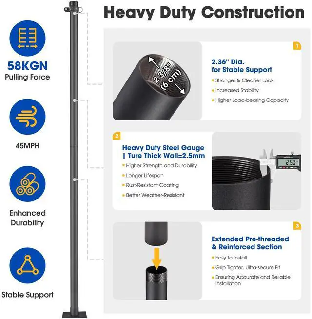 - Durable Steel Construction - Made of 1/8" thickness steel, features powder coated finish with great corrosion and impact resistance, can withstand up to 58 kg/N pulling force, strong breeze and heavy rain