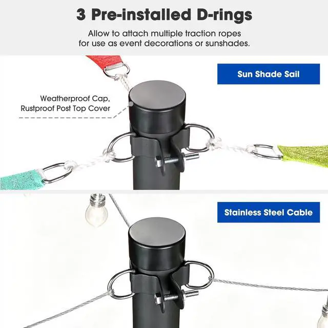 - Simple Design for Compatibility - Comes in simple and sleek design with well-polished surface, perfectly matches sun shade sail or canopy, creating a modern & elegant feel for patio, villa, resort and other high-end venues, also ideal for garden, lawn, deck, backyard, seaside or any other outdoor area