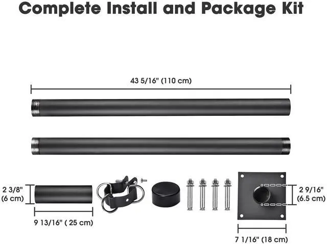 - Section Pole Dimension(Dia.xH): 2 3/8" x 43 5/16" (6 x 110 cm)