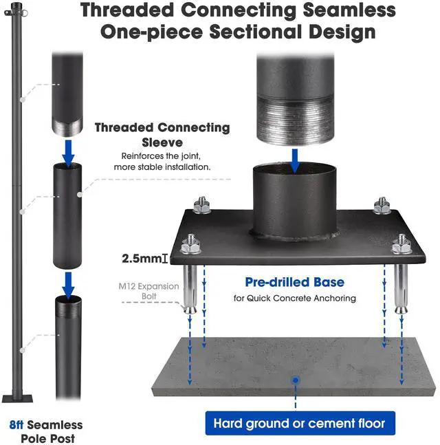 - Easy Installation - Easily mount support pole onto concrete or cement ground with screws depending on where your shade sail is located; Note: The pole is not recommended to be installed onto lawn unless pouring concrete over grass