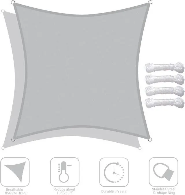 - HDPE Reduces Heat Transfer - Made of 100% brand new 185GSM HDPE material to efficiently reduce the temperature under sail about 50°F (10°C), excellent breathability to allow breeze to pass through, offers a cool and airy shelter on hot days