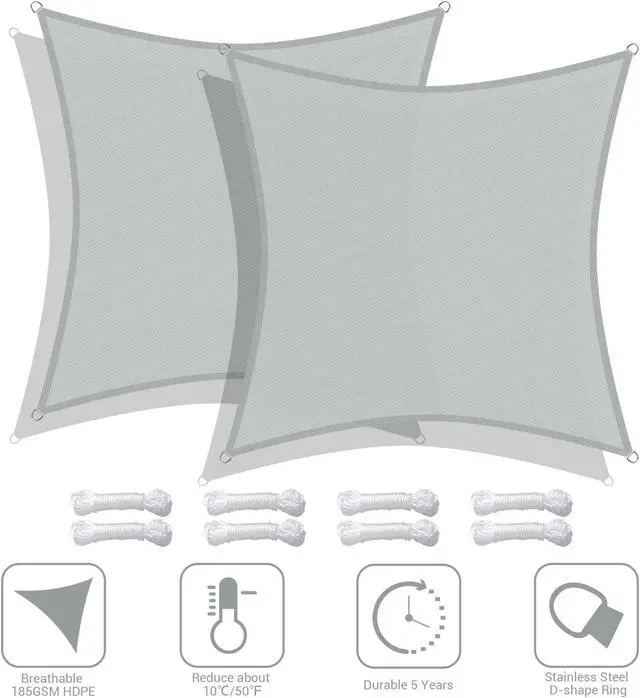 - Decorative & Effective Shading - 2 Packs of 10x10 ft Square Sun Shade Sail, gorgeous color to attract attention, beautiful decoration for backyard, balcony, terrace, porch, pergola, poolside, deck and a perfect awning sunscreen shade to cool down patio for outdoor party with friends or families