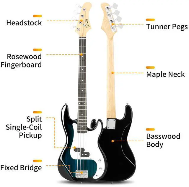 - Complete Accessories: Come with 1x Electric Bass Guitar,1x Amp Cord, 1x Portable Guitar Bag, 1x Shoulder Strap, 1x Bass Pick.