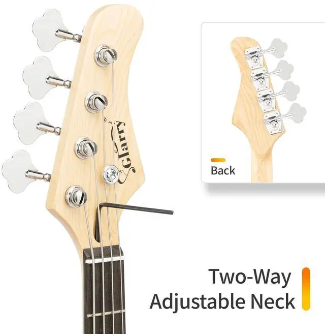 - Good for Beginners: This Electric bass guitar is not only suitable for beginners but also for aspiring musicians. The string height supports adjustment, and you can fine-tune the neck on the top of the fretboard.