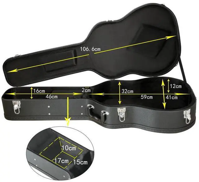 - Specially Designed - 43 5/16" x 18 1/8" x 6 3/16" Acoustic Guitar Case features hard plywood construction for better protection and is specially designed and crafted to fit 41" acoustic guitars perfectly