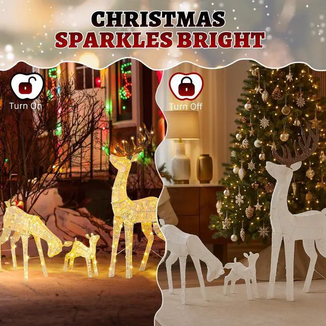 - Enchanting Reindeer Trio - Celebrate the season with a charming buck, doe, and fawn. This beloved family trio delights all ages, infusing your indoor or outdoor space with heartwarming Christmas spirit.