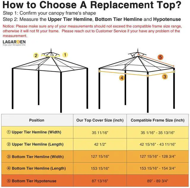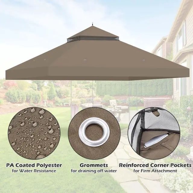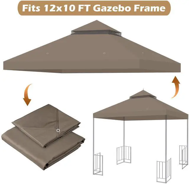 - 12 3/4 x 10 2/3 ft 2-Tier Replacement Canopy Top is compatible with most 12x10 ft dual-tier gazebo frames, designed to renew and upgrade your canopy top with little budget while its natural-tone color elevates the look of outdoor scenarios with a relaxed resort feel