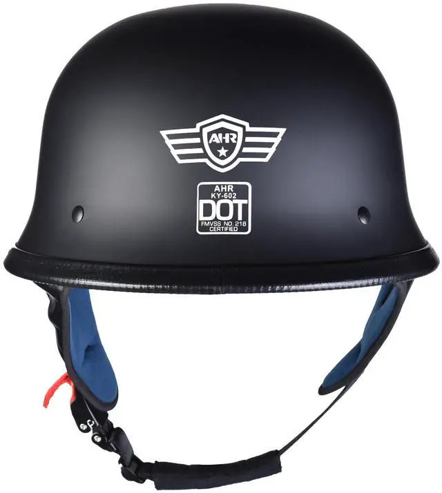 - Retro Style Half Helmet - AHR RUN-G Half Face Helmet comes in a retro German style combining low-profile design and matte black finish for avoiding scratches and fingerprints, presenting a subtle, understated look that never goes out of date; Features full-ventilated half-face design for keeping you cool and comfortable while riding chopper, cruiser, scooter and more