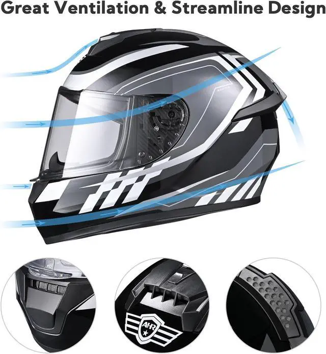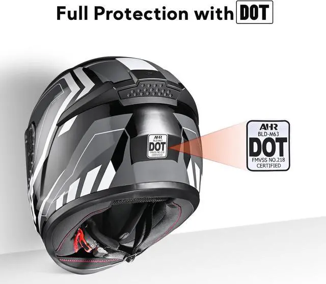 - Full Protection with DOT - AHR RUN-F3 full-face helmet, meeting DOT safety standard, provides injury prevention by fully covering your face & head and perfectly fits most people's head by its ergonomic design on overall oval shape; Ideal for motorcyclists to use in daily ride, commute, adventure or road trip with different kinds of street motorcycles