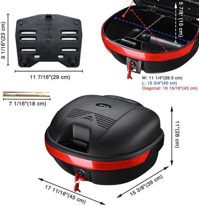 - Universal Tail Box - 18" x 15" x 11" Motorcycle Tour Tail Box features 30 L large capacity for easy fitting a large sized helmet or carrying your necessary gears like raincoats or water bottles; With a universal mounting plate allows to attach the tail box to motorbikes, scooters or other motorcycles with frame; Suitable for commuters or travelers
