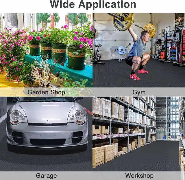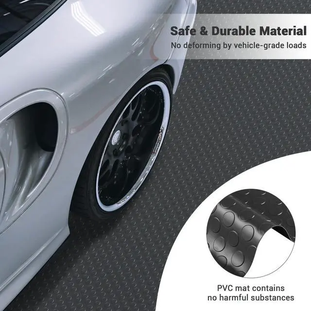 - Safe & Durable Material - Made of PVC, floor mat contains no harmful substances for safe use and produces no odor; Durable and wear resistant, and can support long-time standing and withstand vehicle-grade loads like trailers, trucks, or SUVs without deforming