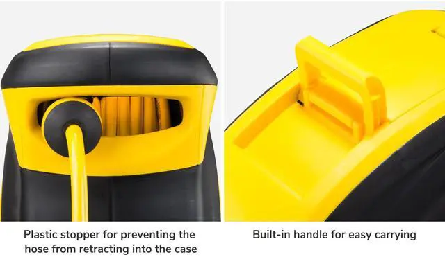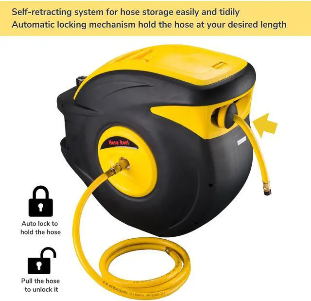 - Auto Locking System - Features a locking device that can hold the hose at certain length for preventing from pulling too long to trip and fall, allowing you to pull as much as you need