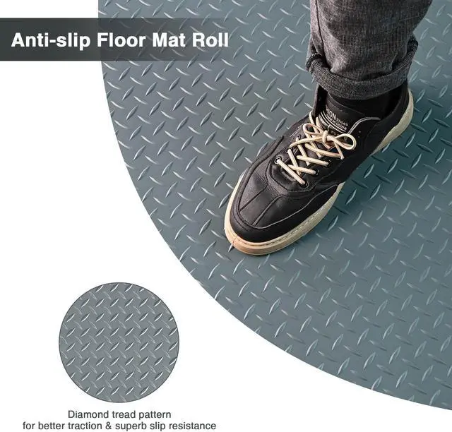 - Anti-slip Floor Mat Roll - 20x4.6 ft Floor Mat Roll features diamond tread pattern for better traction & superb slip resistance, covers concrete or wood sub-floors to prevent deterioration and hide cracks, ideal for residential garage, parking lot, warehouse, food factory, hospital, stadium, hallway