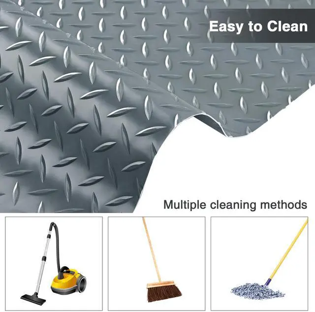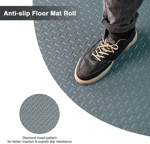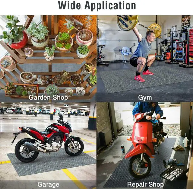 - Wide Application - 6 x 3 ft Garage Floor Mat Roll features a special treated diamond-patterned surface to enhance friction for providing anti-slip functionality for parking motorcycle, perfect for covering stains and cracks on the floor of garages, warehouses, storage rooms, freight elevators, boats, repair shops, gyms, etc., especially those made of concrete or wooden flooring