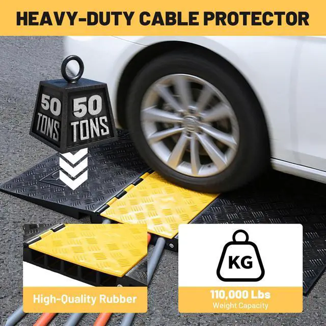 - Heavy-Duty Construction - With an extraordinary 110,000 Lbs weight capacity, this cable protector withstands constant use by heavy equipment, emergency vehicles, and service trucks without cracking or deforming, ideal for hospital drive-through, loading docks, and facility entrances