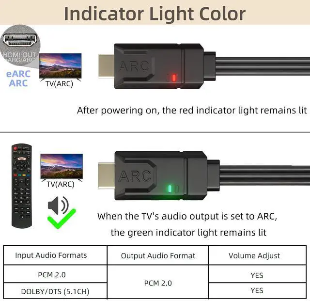 The output audio format can only be PCM 2CH,the volume can be controlled via TV remote control