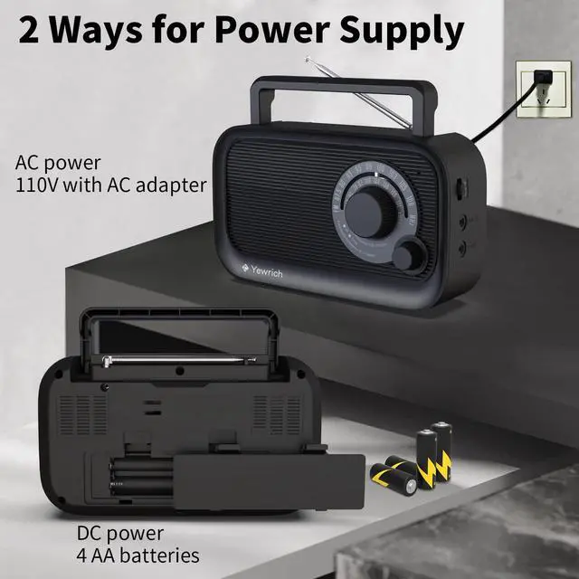 Yewrich excellent portable am/fm radio has good sensitive reception and selectivity. If you’d like to get the best AM FM reception, please adjust the extendable antenna length and angle, and put the radio in a suitable direction.