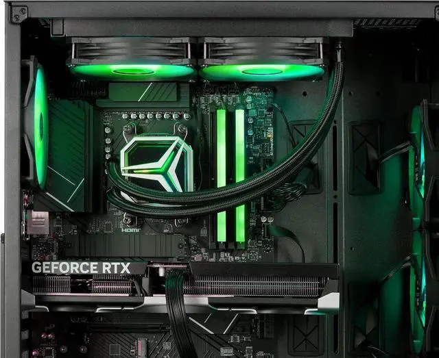 Equipped with 32 GB of DDR5 6000 MHz RAM and a spacious 2 TB NVMe SSD, youll enjoy ultra-fast load times, seamless multitasking, and ample storage for your favorite AAA titles, creative projects, and multimedia libraries. The tower air cooler paired with six RGB fans ensures efficient airflow and stable performance while enhancing your setup with customizable RGB lighting.