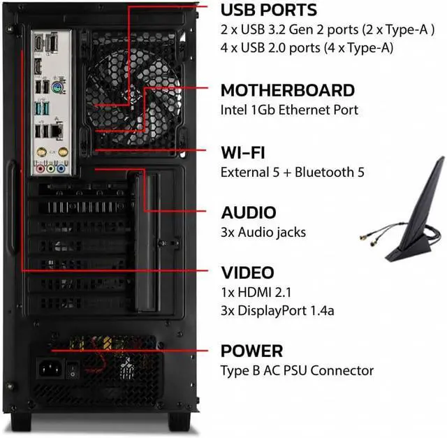 • This powerful gaming PC is capable of running all your favorite games such as Call of Duty Warzone, Fornite, Escape from Tarkov, Grand Theft Auto V, Valorant, World of Warcraft, League of Legends, Apex Legends, Roblox, PLAYERUNKNOWN's Battlegrounds, Overwatch, Counter-Strike and many more.
