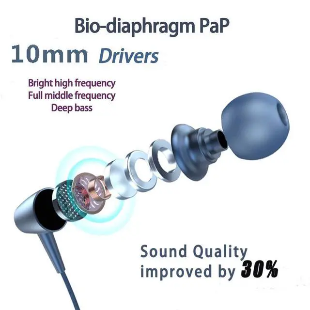The 10mm oversized dynamic drivers are 20% larger than the standard ones to deliver music. Sound quality is improved by 30%.
