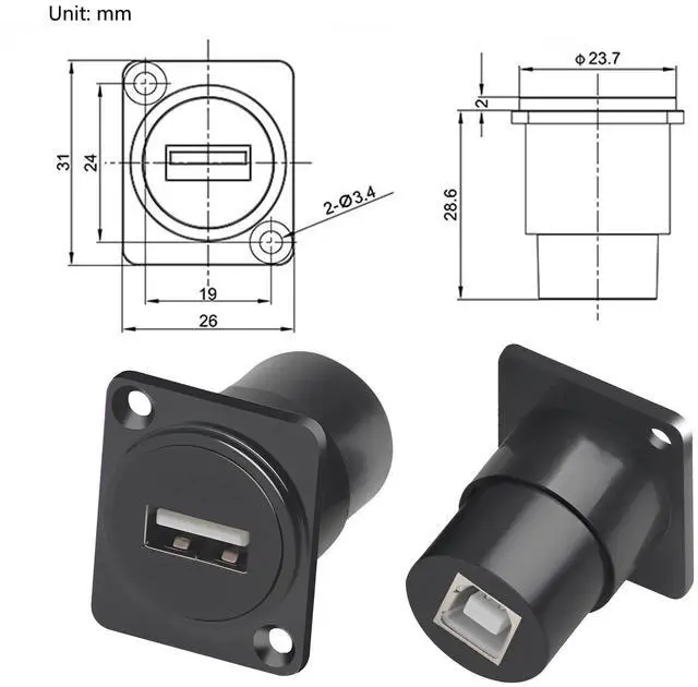 [Versatile Panel Mount Design]: Our USB A to B connector seamlessly integrates into printer scanner cases, industrial equipment, and custom electronics projects, providing a secure and easily accessible USB A port from a panel-mounted USB B connection.