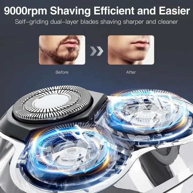 9 Blades*3, premium stainless steel self-sharpening blades, deliver excellent shaving speed and effect