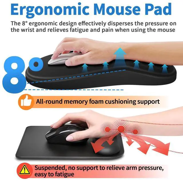 Compared with other ordinary wrist pads, our premium ergonomic mouse pad with memory foam provides comprehensive cushioning support and carpal tunnel relief, allowing your wrists and arms to stay comfortably relaxed during extended computer use.