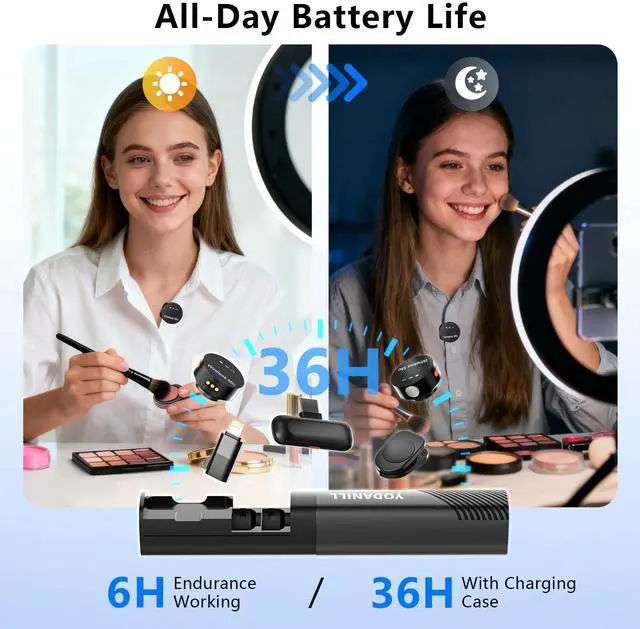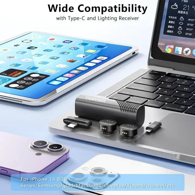AI Noise Cancelling Wireless lavalier Microphone with Type-C & Lightning Plug-Play Receiver & 36H Charging Case