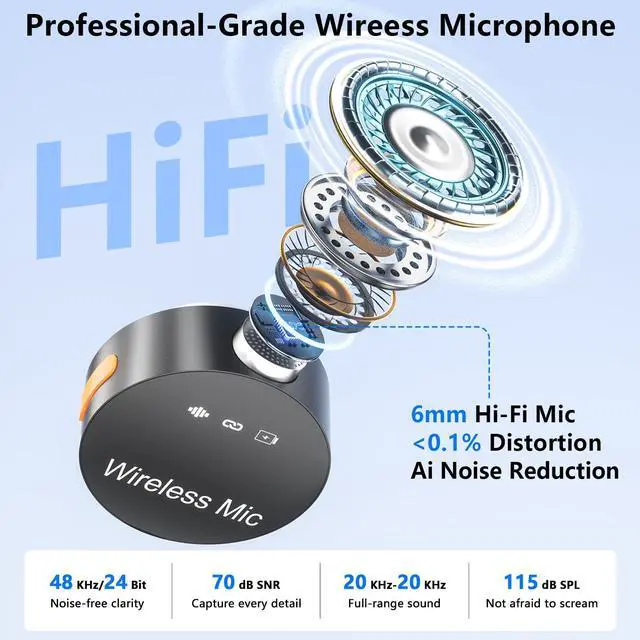 Wireless lavalier Microphone with Hi-Fi studio-quality works for Podcast, Video Recording ,vlogging, Streaming, interview.