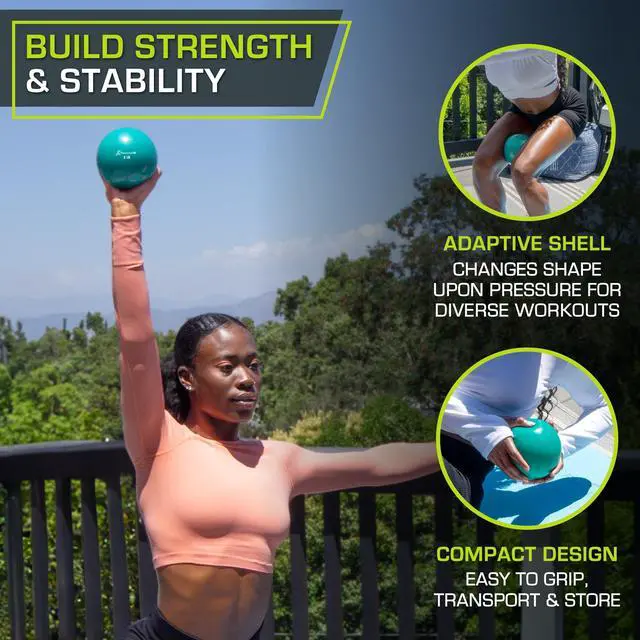 The compact size and adaptable design of each toning ball results in an effortless, palm-sized fit; the accommodating sand filling shifts to make space in gym bags, backpacks, and other travel accessories