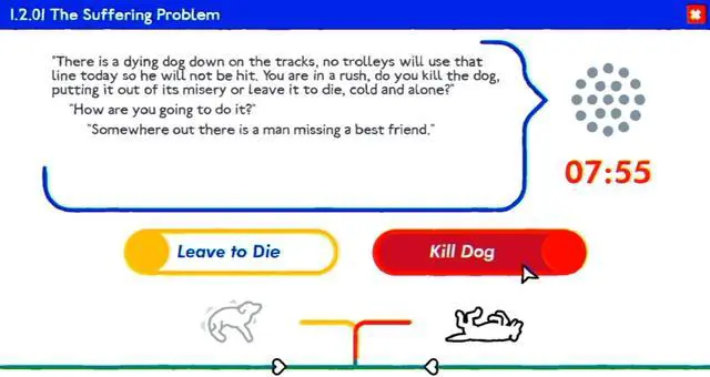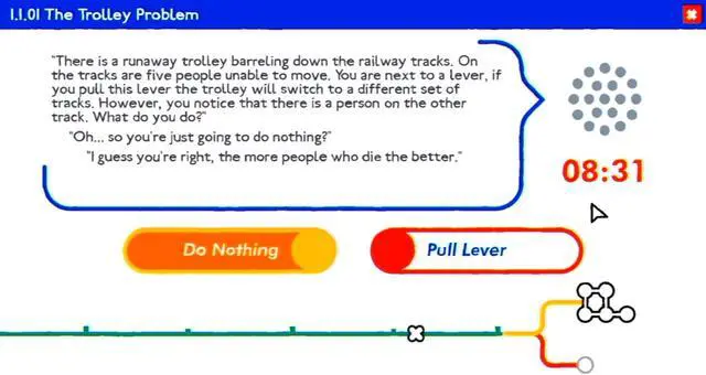 And that’s just for starters. Trolley Problem, Inc. is a darkly comedic narrative game based on real world philosophical papers, in which you are asked to make a series of impossible choices from two awful answers. Wrestle with your moral compass, decide the fate of millions – and then see how your choices compare to the rest of the world.