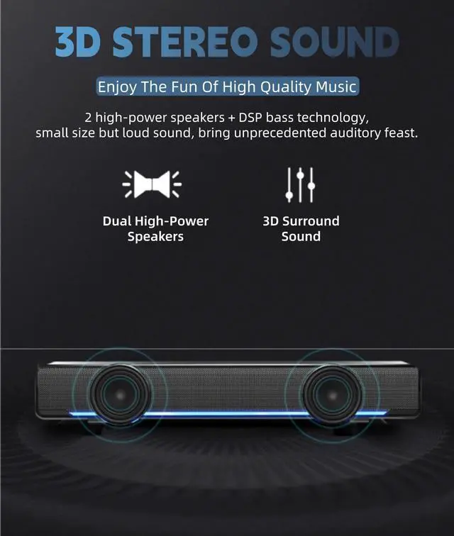 1.3D Stereo Sound: Adopts 2pcs of high power speakers, equipped with DSP bass sound technology, offers you penetrating and sound and make you feel like in the live.