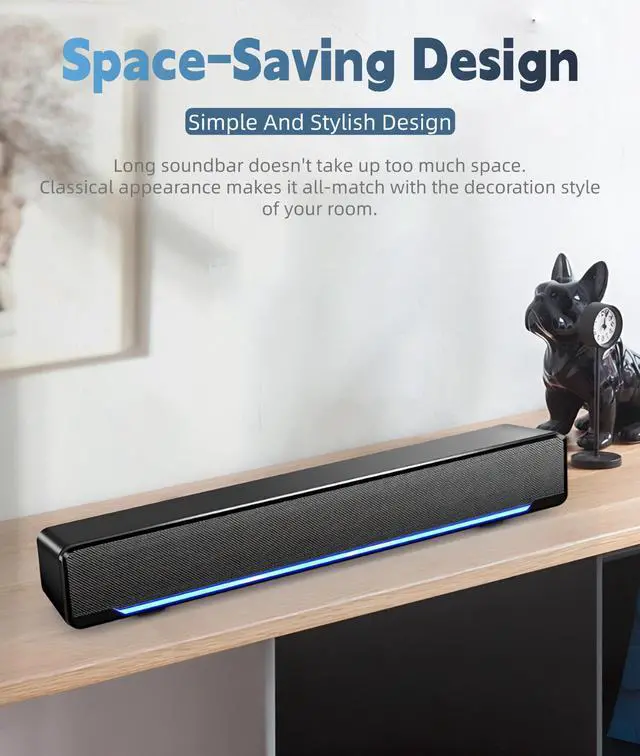 5.Volume knob on the cable can help you easily adjust the volume, the blue LED breathing light makes the speaker more exquisite.