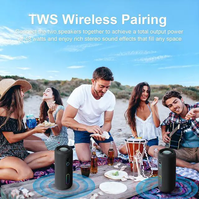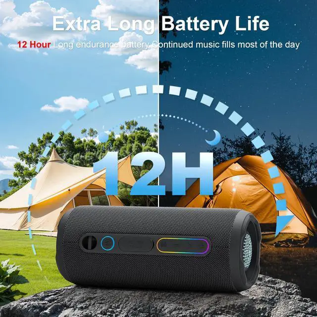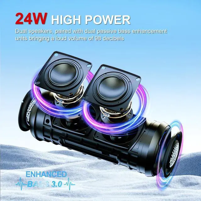 Introducing the T13 outdoor Bluetooth speaker: 24W of powerful, deep bass sound. Built to impress with IPX7 waterproofing, TWS pairing, 12H playtime, and vibrant RGB lights — perfect for camping, pool parties, biking, and outdoor adventures